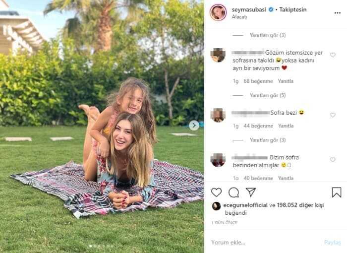 Şeyma Subaşı'nın sofra bezi üstünde verdiği pozlar takipçilerinin dikkatini çekti. Subaşı'nı yorum yağmuruna tutan kullanıcılar, pozlardan çok sofra bezini konuştu...