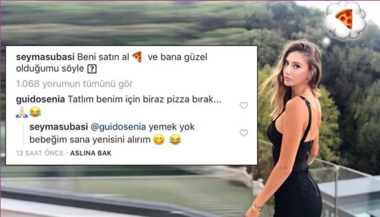 Şeyma Subaşı, pizza emojili bu fotoğrafı, 'Beni satın al ve bana güzel olduğumu söyle' notuyla yayınladı.