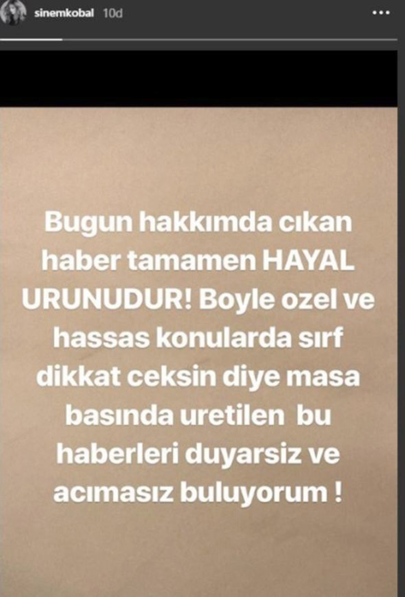 Haberin ardından Sinem Kobal sosyal medya hesabında yazılı bir açıklama yayınladı ve iddiaları yalanladı...
