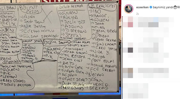 Ünlü sunucu Ece Erken, sosyal medya hesabından hangi ünlü ismin hangi ünlüyle konuşmadığını belirten bir liste açıkladı.