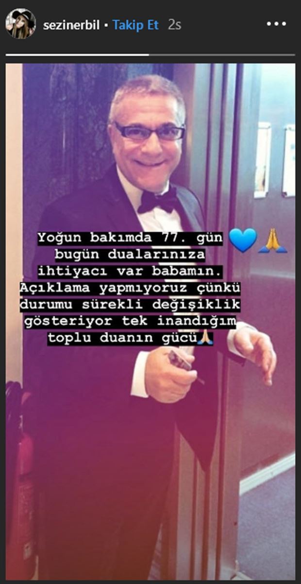 “Yoğun bakımda 77. gün. Bugün dualarınıza ihtiyacı var babamın. Açıklama yapmıyoruz çünkü durumu sürekli değişiklik gösteriyor. Tek inandığım toplu duanın gücü.”
