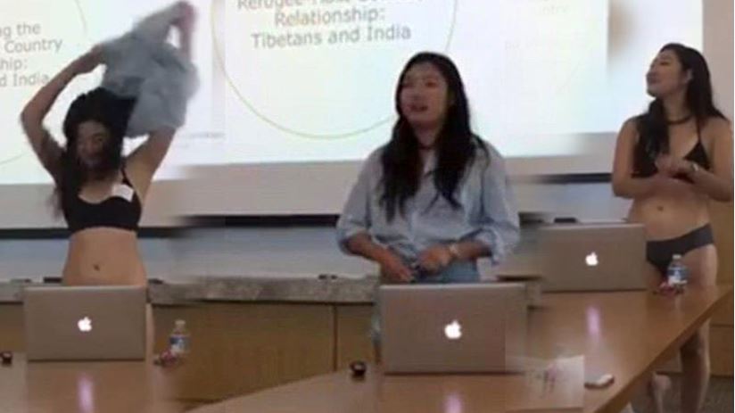 ABD'de bir öğrenci, üniversite hocasının şortunun çok kısa olduğunu söylemesi üzerine, tepki göstermek için sınıfın ortasında soyundu.
