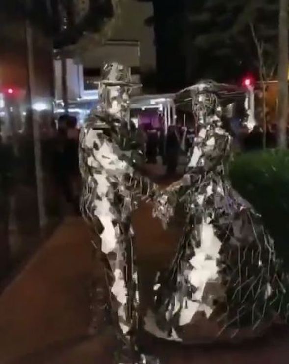 İkoncan Süreyya Yalçın, üstü ayna kaplı kostümle kendisini adeta kamuflaj etti.