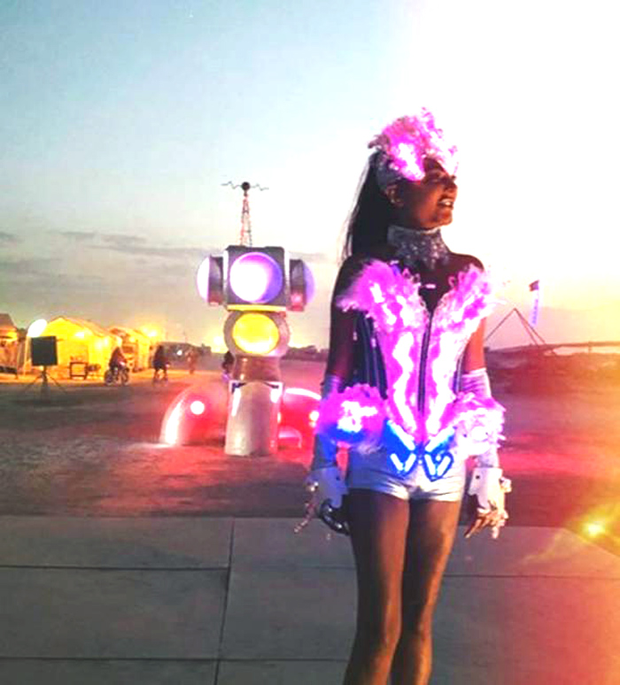 ABD’nin Nevada çölünde düzenlenen Burning Man 2018 Festivali'ne giden Süreyya Yalçın iddialı kostümlerine bir yenisini daha ekledi.