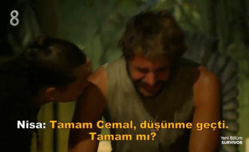 Ağladığı için zaman zaman konuşmasına ara vermek zorunda kalan Cemal Can'a takım arkadaşları Nisa ve Yasin destek oldu.