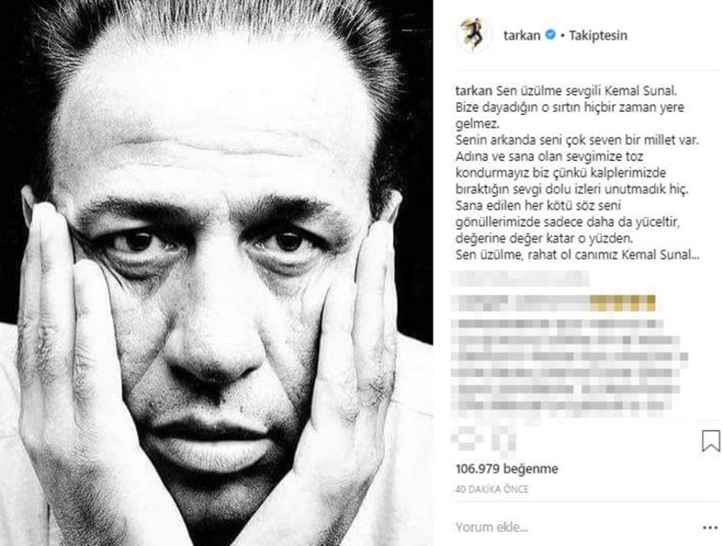 Tarkan'da Kemal Sunal'a yapılan hakarete kayıtsız kalmadı
