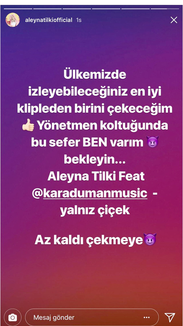 Mart ayında 18 yaşına basan Aleyna Tilki iddialı açıklamalarına devam ediyor. Genç şarkıcı bu sefer de yönetmen koltuğuna oturacağını açıkladı ve çekeceği klibin Türkiye’de izlenebilecek en iyi klip olacağını iddia etti.