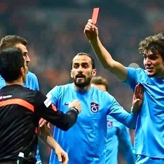 TÜRK TELEKOM ALİSAMİYEN ARENA STADYUMU'NDA GALATASARAY'IN TRABZONSPOR'U 2-1 YENDİĞİ MAÇTAKİ HAKEM KARARLARI TRABZONSPOR TARAFTARLARINI ÇİLEDEN ÇIKARDI. MAÇIN HAKEMİ 4 TRABZONLU FUTBOLCUYA KIRMIZI KART GÖSTERMİŞTİ.