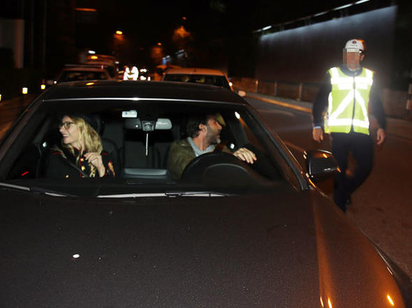 Mekandan ayrı ayrı çıkan çift, birkaç yüz metre sonra trafik kontrolüne takıldı. İkili o anda flaşlar patlayınca gülmeye başladı.