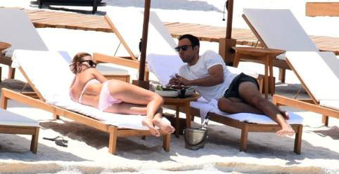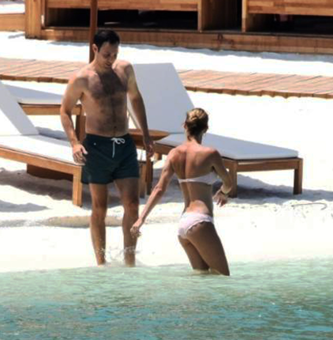Uzun süre yan yana şezlonglarda uzanan ama pek yakınlaşmayan ikili, suya girdikten sonra tedirginliği üstlerinden attı.