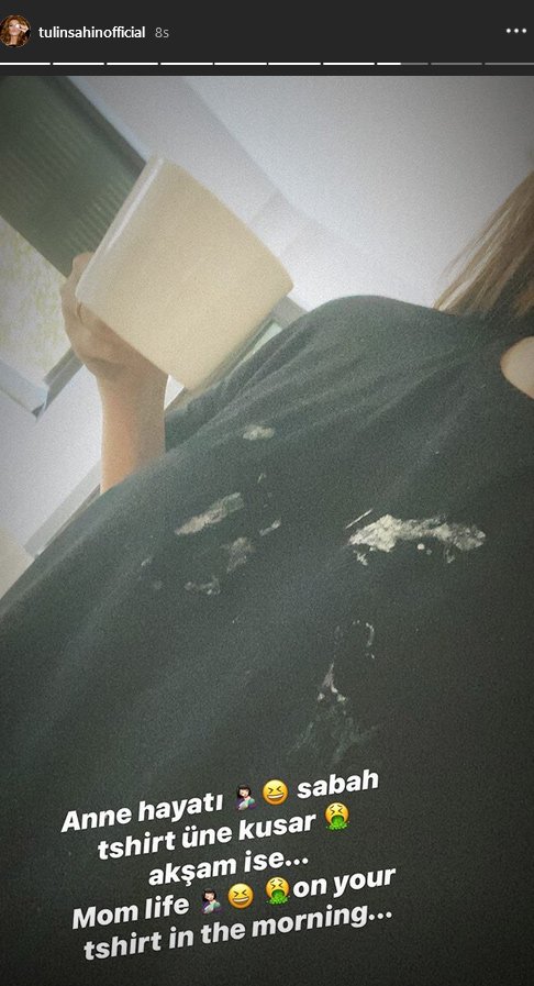 Kızı Leyla’nın tişörtüne ve saçına kustuğu anların görüntülerini Instagram hesabının hikaye bölümünden paylaşan Şahin, tüm zorluklarına rağmen hep el ele oldukları mesajını vermeyi de unutmadı.