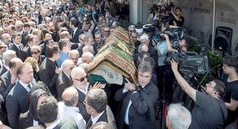 Şişhane'deki Holding binası önünde yapılan törenin ardından Demirören'in cenazesi Fatih Camisi'ne getirildi.