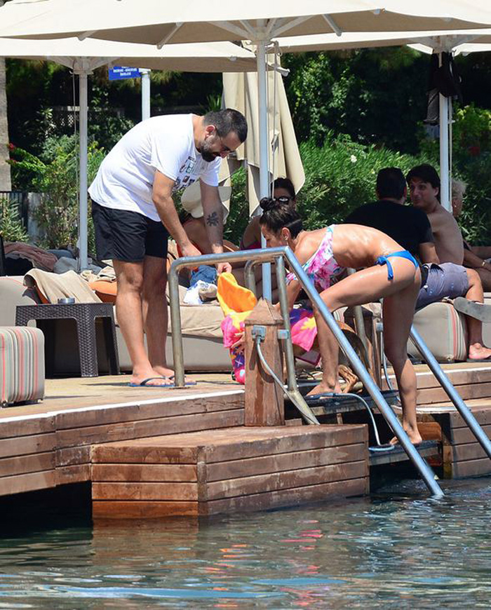 Fenerbahçe eski Başkanı Metin Aşık’ın oğlu Murat Aşık ile sevgilisi Gökçen Paprika önceki gün Bodrum Türkbükü’ndeydi.Gökçen Paprika, 40 derece sıcakta pişen köpeği Disco’yu denize soktu. Birlikte yüzdüler. Sonra Disco’yu yıkadı ve havluyla sarıp sarmalayıp kucağına aldı.