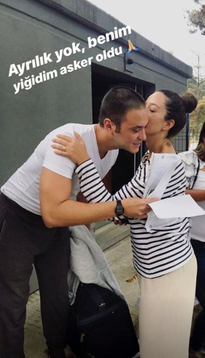 Eşi ile vedalaşırken çekildiği bu kareyi sosyal medya hesabından paylaşan Pelin Akil altına; 'Ayrılık yok, benim yiğidim asker oldu' mesajını yazdı.