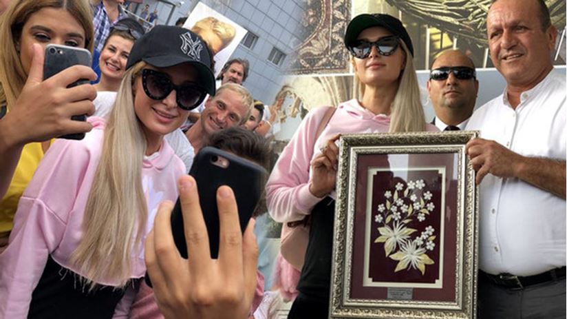 Fikri Atakoğlu tarafından ipek kozası figürlü resim hediye edilen Paris Hilton, “Burada olduğum için çok heyecanlıyım. Otelle ilgili gördüğüm fotoğraflar çok güzeldi. Akşam da güzel bir parti bizi bekliyor” dedi.