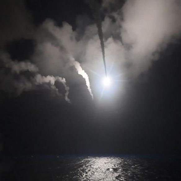 ABD, Başkan Trump'ın talimatıyla Suriye'nin Şayrat Hava Üssü'nü savaş gemilerinden atılan 59 füzeyle vurdu. Pentagon'da toplantı sürerken USS Ross ve USS Porter ABD füze destroyerleri Suriye açıklarına yaklaştı. ABD Savunma Bakanlığı Pentagon, Suriye saatiyle 04:40'ta Akdeniz'in doğusundaki ABD savaş gemilerinden Suriye'ye 59 Tomahawk füzesi fırlatıldığını duyurdu. Füzeler Humus yakınlarında Al-Shayrat hava üsssünü hedef aldığını duyurdu.