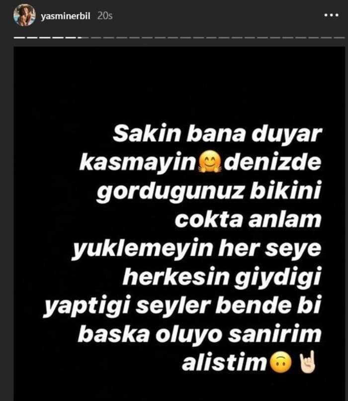 Yasmin Erbil, bu paylaşımı üzerinden kendisine anlamsız eleştiriler yapacak olan takipçilerini önceden uyardı ve şu sözleri paylaştı: